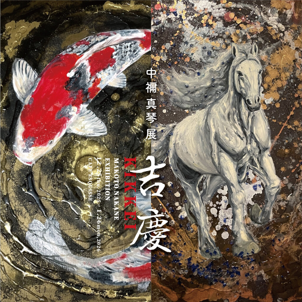 本展覧会では、「神の使い」とも言われる鯉が、優雅に、そして力強く泳ぐ姿を、まるで新年を祝い舞うかのように描いた作品群を中心に発表します。