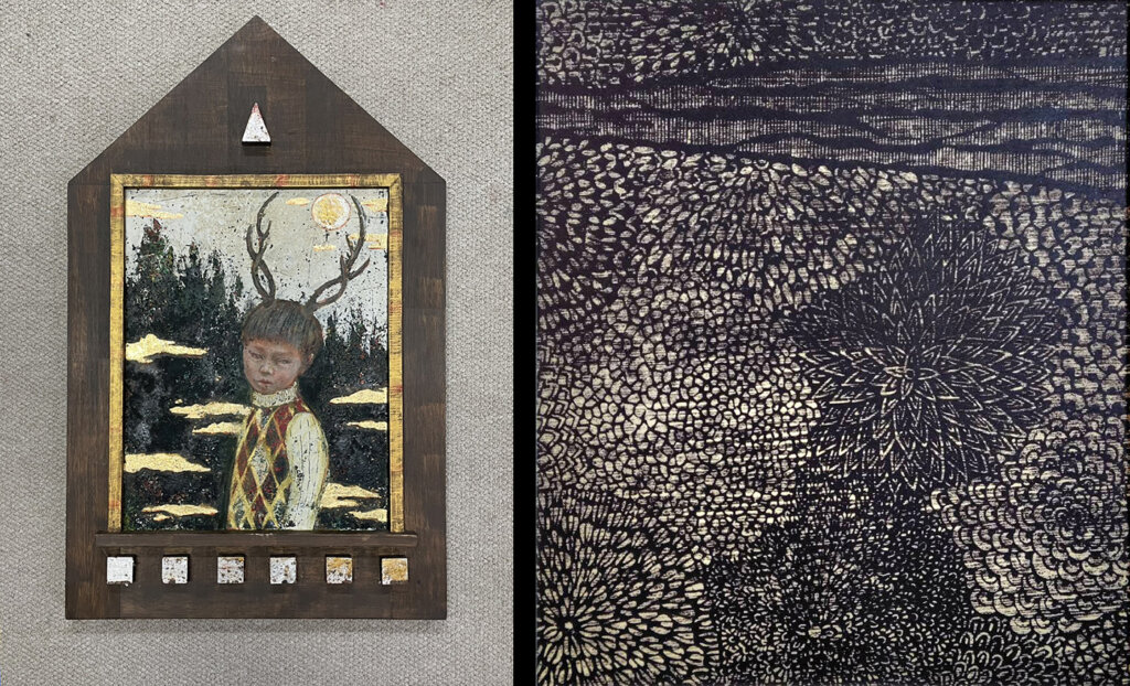 田仲茂基(道展会員)は北海道の野生動物をモチーフとし、自然と人間の関わり、尊さ、願いなどをテーマに描いています。