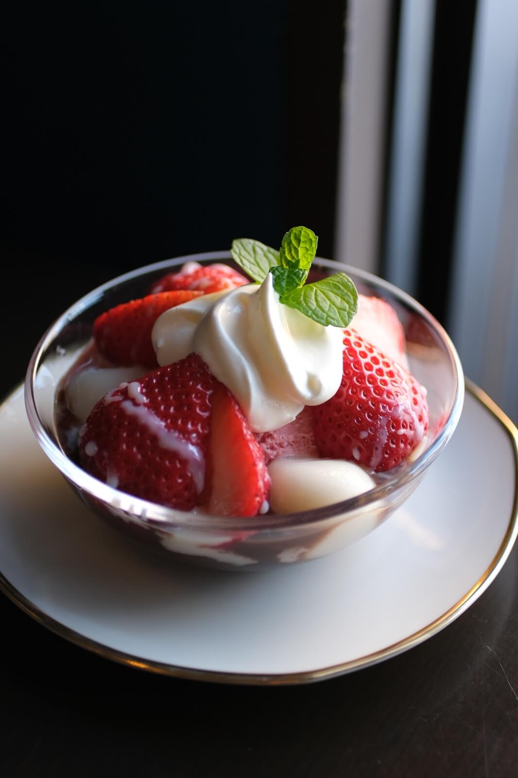季節のデザート『あまおう苺と白玉のクリームぜんざい』